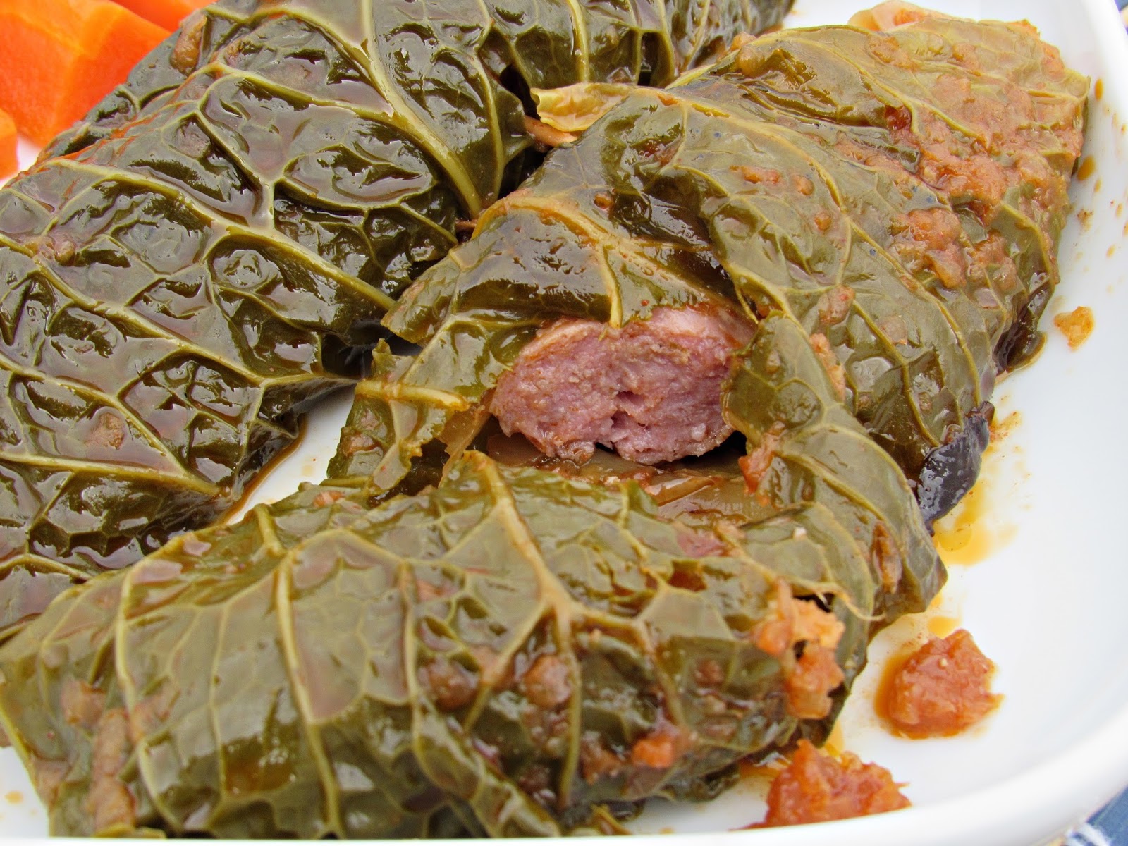 1.Comece por escaldar as folhas de couve lombarda em água a ferver (cerca de 3 minutos). Retire as folhas de couve lombarda da água, escorra-as muito bem.