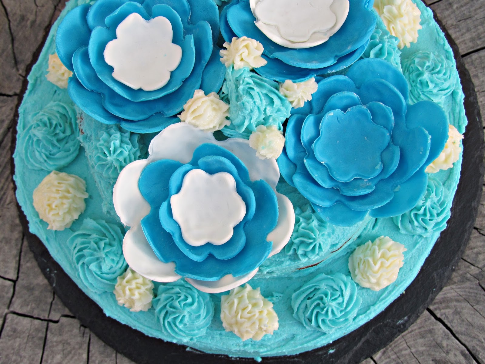 Já tinha saudades de vos trazer um bolo de aniversário mais "arranjadinho", por isso, acabei por trazer o bolo que preparei para o aniversário da mãe da minha namorada. Como ela gosta muito de flores e como queria algo diferente dos últimos anos, acabei por preparar um bolo com tons azulados e com flores em pasta de açúcar.